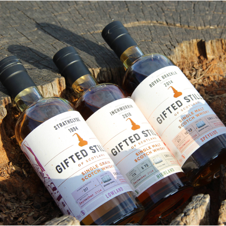 La gamme Gifted Stills of Scotland propose des Single Malts, qui grâce à une distillation parfaitement maîtrisée, offrent des qualités gustatives indéniables. En provenance de toutes les régions d’Écosse, ces whiskies vous séduiront par leur élégante précocité, leur finish spécifique ou la richesse de leur vieillissement.
