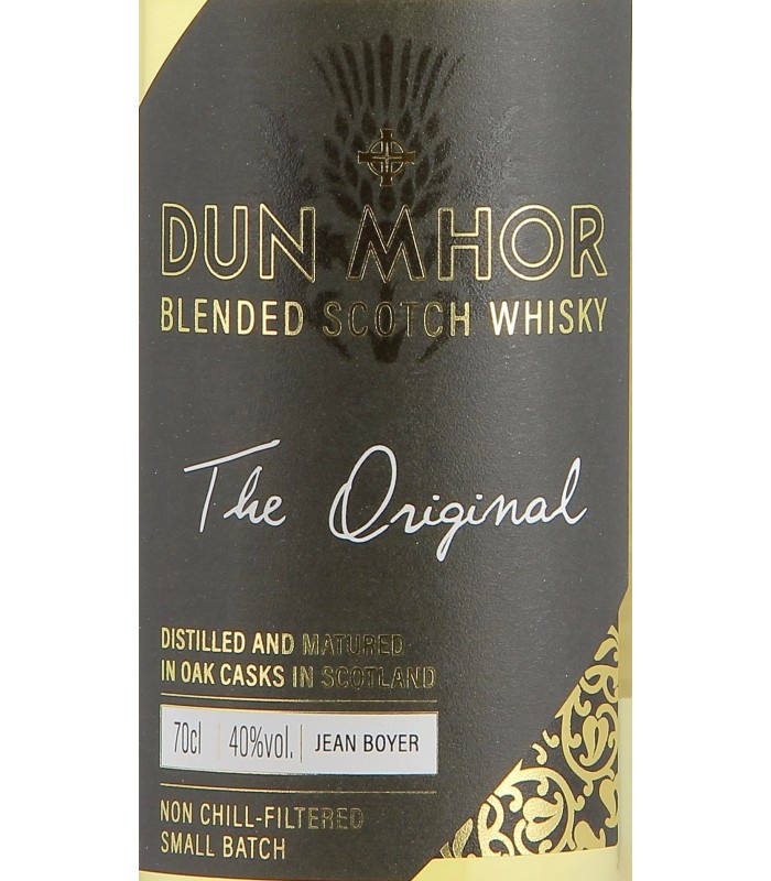 Un Blended Scotch Whisky 30 % Malt vous garantit un assemblage composé au moins de 30% de whisky d’orge malté. La marque Dun Mhor propose des whiskies distillés dans toute l’Ecosse mais assemblés par la Maison Jean Boyer.