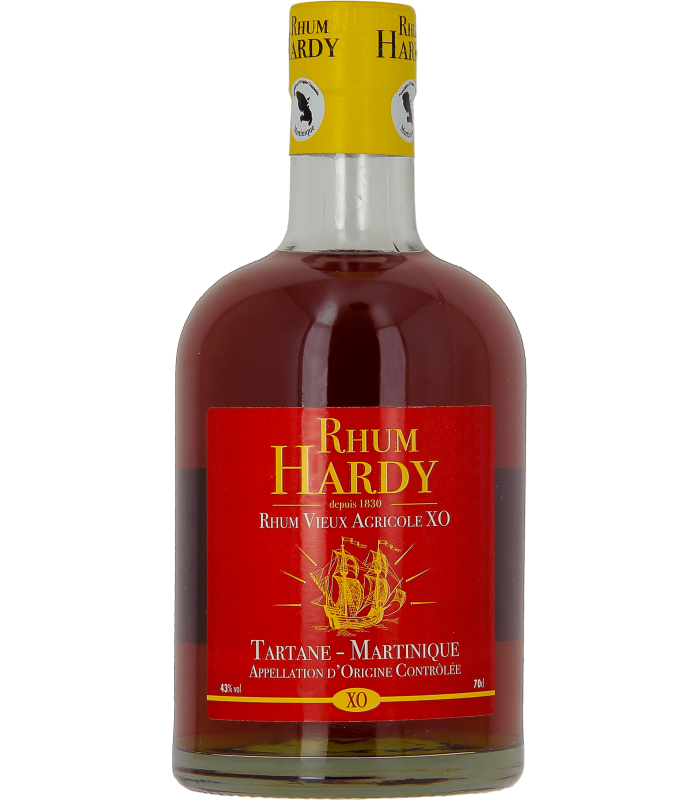 Le Rhum Vieux XO Hardy est produit à partir des cannes à sucre situées au cœur de la presqu’île de la Caravelle et de ses alentours, sur la côte Atlantique. Après 6 longues années de vieillissement, ce rhum vieux a acquis une belle maturité, et offre une très belle concentration d’arômes dominés dans un premier temps par des notes de fruits séchés (pruneaux, figues, dattes, amandes), et de fruits cuits (tarte tatin). Puis des notes intenses de gousse de vanille et de cuir viennent complexifier ce magnifique nectar. En bouche, cette palette aromatique s’épanouit longuement avec une très belle ronde.