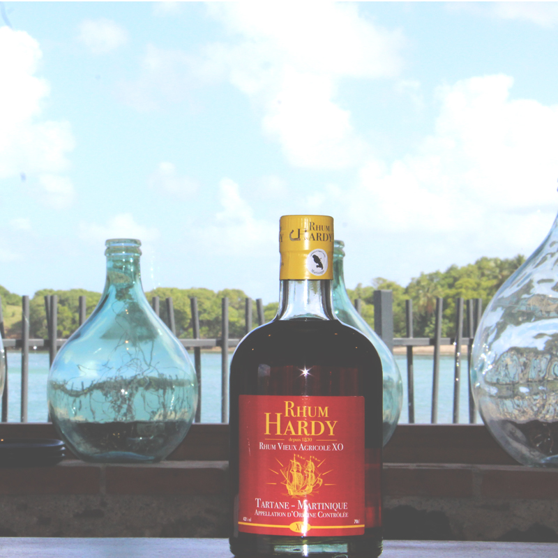 C’est au cœur de la presqu’île de la Caravelle, haut lieu de la piraterie des Caraïbes, que se trouvent les terres du Rhum Hardy, entre la Baie du Trésor, les ruines du Château Dubuc et la Baie du Galion. En 1830, la rhumerie Tartane est fondée et au hasard des mariages et successions devient la propriété de la famille Hardy au début du XXème siècle. Cette petite entreprise de production cesse de distiller en 1996 mais la production se poursuit néanmoins au sein d’une distillerie voisine qui permet à la marque de proposer des cuvées exceptionnelles. La canne à sucre provient toujours du domaine (9,3 ha) et bénéficie des embruns marins que l’on retrouve dans le rhum.