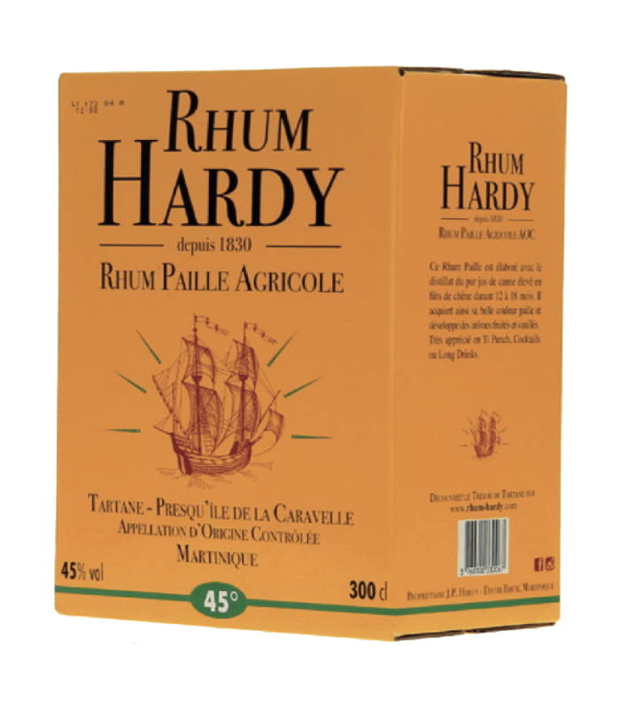 Le Rhum Paille Hardy est produit à partir des cannes à sucre situées au cœur de la presqu’île de la Caravelle et de ses alentours, sur la côte Atlantique. Ce Rhum Paille est élaboré avec le distillat du pur jus de canne élevé en fûts de chêne durant 18 mois. Il acquiert ainsi sa belle couleur paille et développe des arômes fruités et vanillés. Très apprécié en Ti Punch, Cocktails ou Long Drinks.