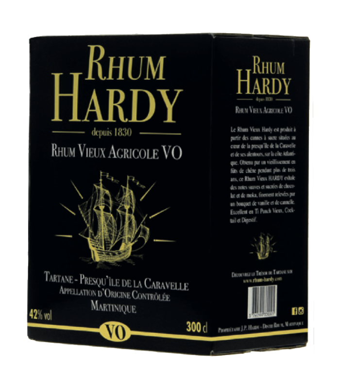 Le Rhum Vieux VO Hardy est produit à partir des cannes à sucre situées au cœur de la presqu’île de la Caravelle et de ses alentours, sur la côte Atlantique. Obtenu par un vieillissement en fûts de chêne pendant plus de trois ans, ce Rhum Vieux HARDY exhale des notes suaves et sucrées de chocolat et de moka, finement relevées par un bouquet de vanille et de cannelle.