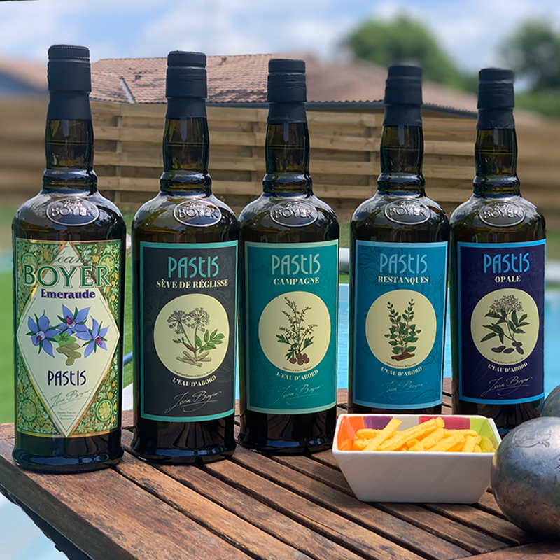 Autrefois, les vignerons distillaient souvent leur marc, pour les aromatiser ensuite avec les plantes locales : fenouil sauvage, angélique, sauge, mélisse, armoise, thym, serpolet… Ces boissons servaient autant au plaisir qu’aux soins médicaux. On y ajoutait quelques épices locales (safran dans le bordelais, coriandre en Provence) ou quelques épices exotiques ramenées d’Orient par des navigateurs. C’est dans cet esprit qu’en 2000, la maison Jean Boyer a imaginé son pastis de Campagne.