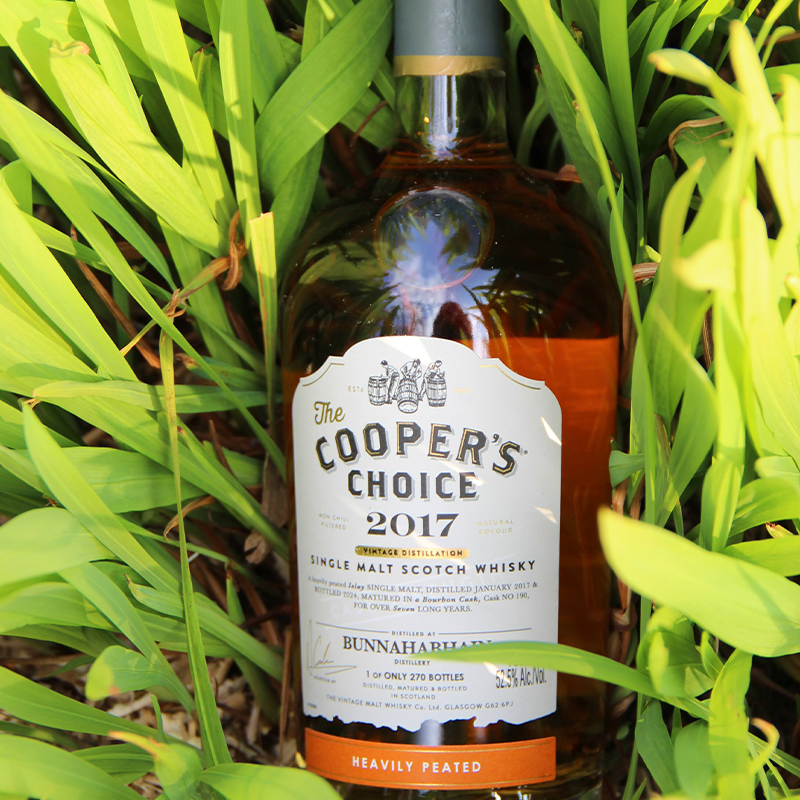 La gamme Cooper’s Choice (choix du tonnelier) propose une sélection de fûts remarquables, Single Malt, non filtré à froid, non coloré et au degré naturel. Chaque étiquette indique le millésime de distillation, celui de la mise en bouteille ainsi que le nombre de bouteilles extraites du fût.