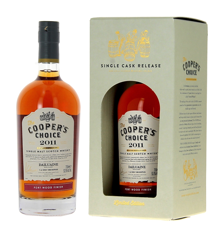 La gamme Cooper’s Choice (choix du tonnelier) propose une sélection de fûts remarquables, Single Malt, non filtré à froid, non coloré et au degré naturel. Chaque étiquette indique le millésime de distillation, celui de la mise en bouteille ainsi que le nombre de bouteilles extraites du fût.